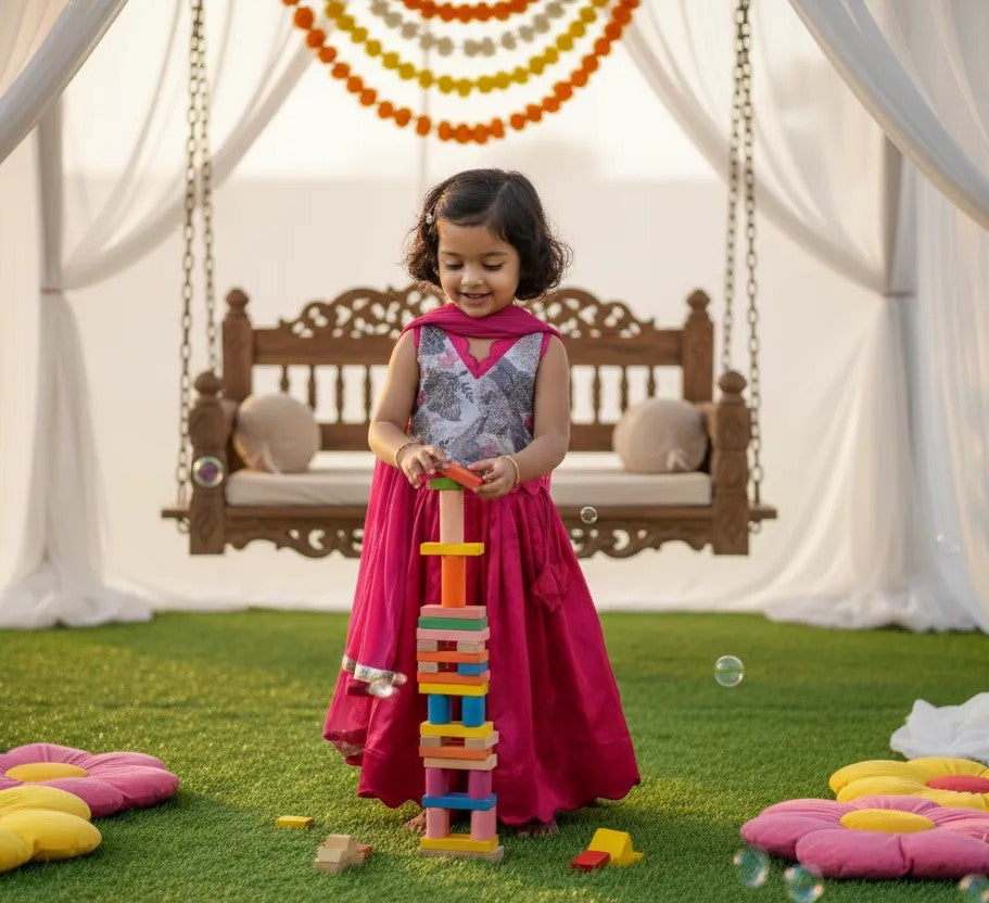 Comfort is our number one priority! We primarily use soft, breathable fabrics like 100% cotton, cotton silks, and mulmul. All our garments have a soft, non-irritating lining (usually pre-washed cotton) to ensure there is no itching, so your child can play freely.